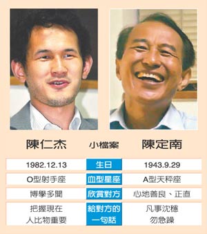 陳仁杰(以下簡稱杰):我很喜歡擁抱,因為擁抱可以表達感情。聽爸爸說,我以前很黏他。我們現在感情比較好,小時候他忙啊。